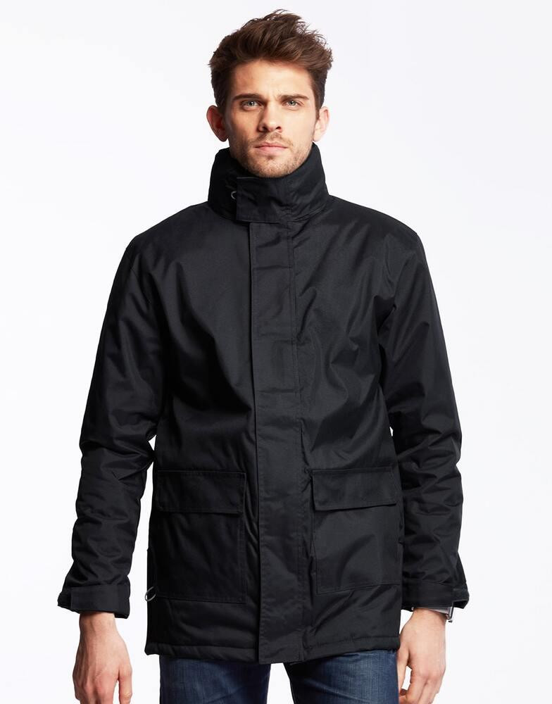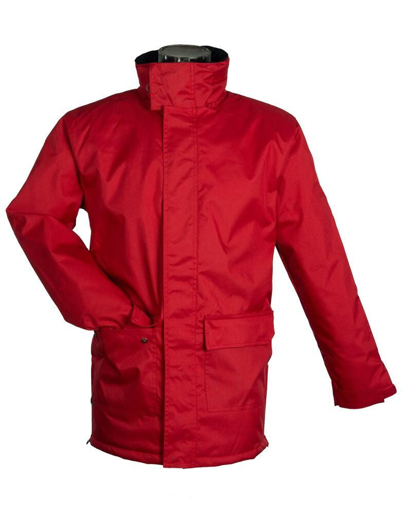 Unisex Parka Oxford 300D waterproof polyester coating. Taffeta lining with polyester filling. Nylon central zip under flap with pressure. Fleece lined collar, adjustable scratch. 2 hand pockets with flap pressure. 1 zipped "value" in the left pocket. Cuffs with Velcro adjustment. Lined hood in collar with tightening. Zip ease on the sides for comfort. Inside pocket with label portfolio patronymic. Large volume inside pocket. Invisible zip opening for marking.