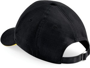 It has 6 contrasting color panels and a sandwich visor, structured front panels, and ventilation grommets to quickly wick away sweat.