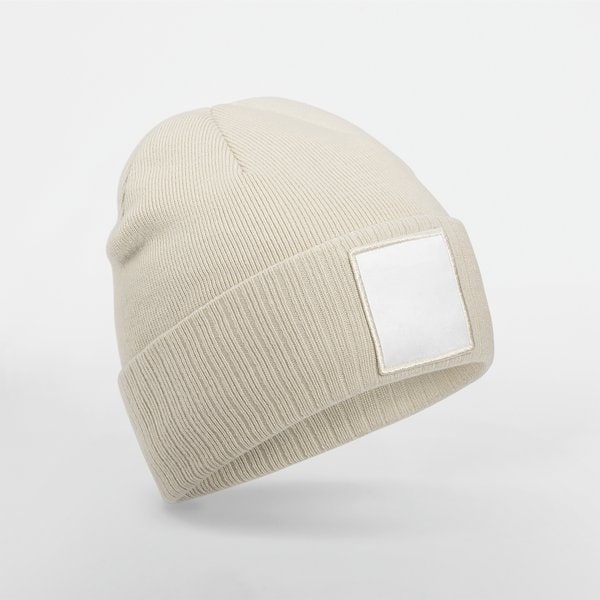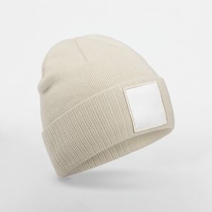 Beechfield B337R - Oatmeal/White - Beanie with appliqué patch