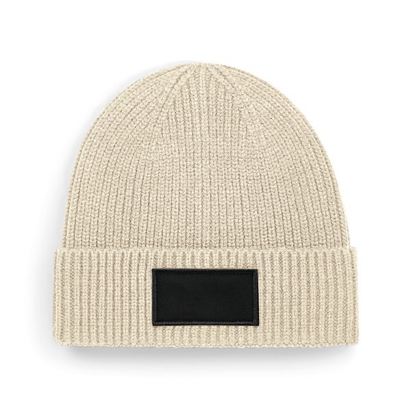 Beechfield B442R - Oatmeal/Black - Trendy beanie with patch