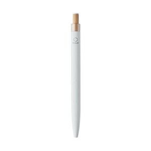 Recycled aluminium push ball pen with bamboo button with matching colour detail and matching metal clip.