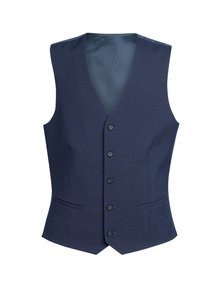 Fitted cut, 5-button front, lined back with adjustment, 2 narrow pockets with piping.