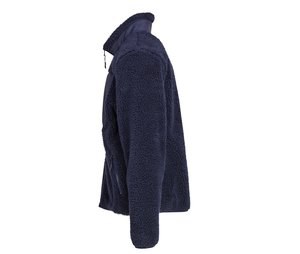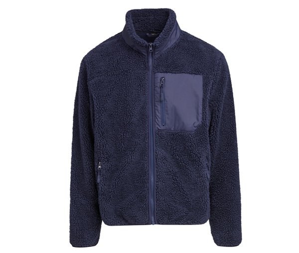 Stand-up collar. Zippered closure and chest pocket. Zippered side pockets. Durable, comfortable polyester outer shell. Bonded Sherpa lining.