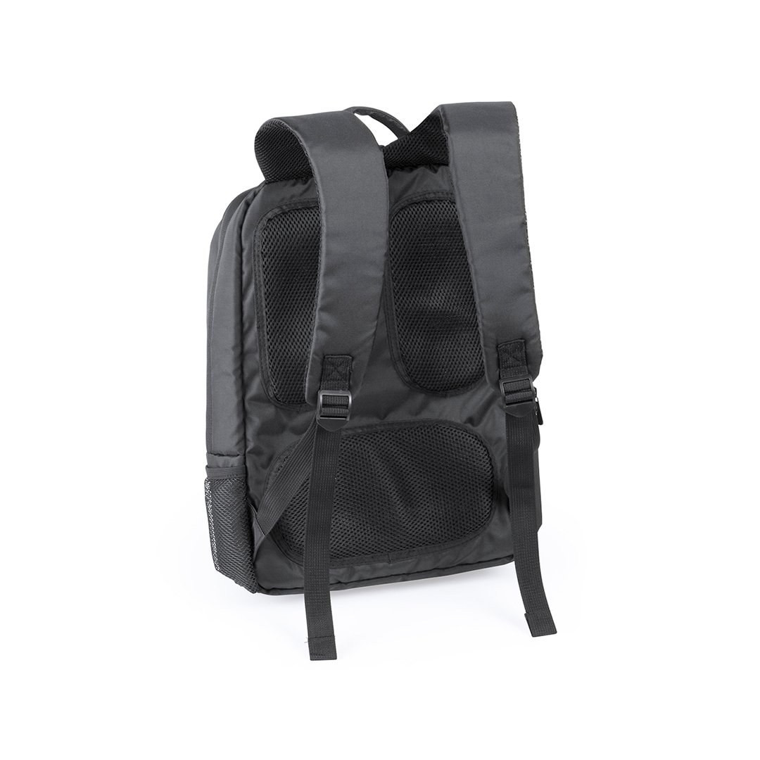 Resistant 600D nylon laptop backpack with zipper closure front pockets and reinforced handle. With ergonomic back padding and shoulder straps, Including an inside padded compartment for laptops up to 15 inches.