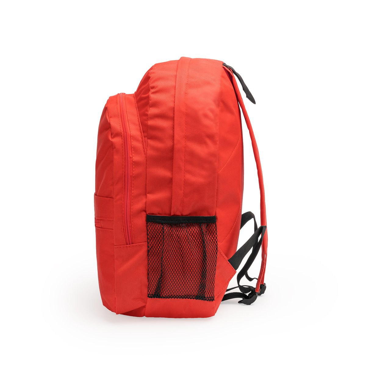 Backpack in resistant 600D polyester in a wide range of colours. Two main compartments with zipper closure and front pocket. Easy access side pocket, zipper with easy opening pullers and black color accessories. Padded back and adjustable shoulder straps with padding