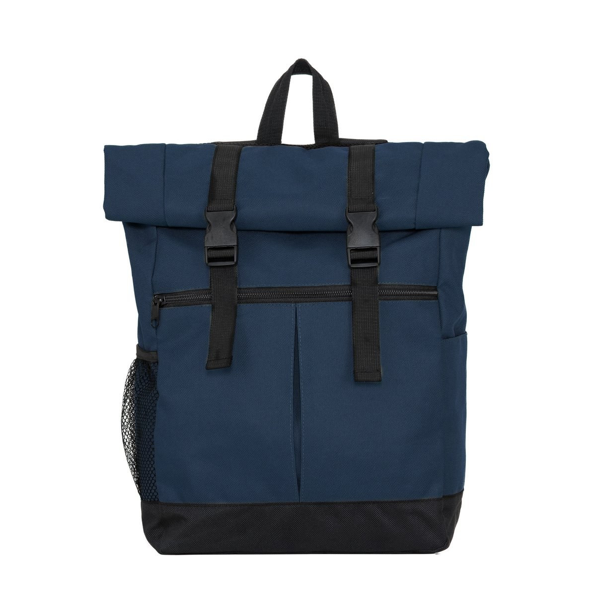Multifunction backpack. Double padded handle for shoulder. Extendable central opening. Front pocket with zipper and bellows. Side pockets. Adjustable interior pocket