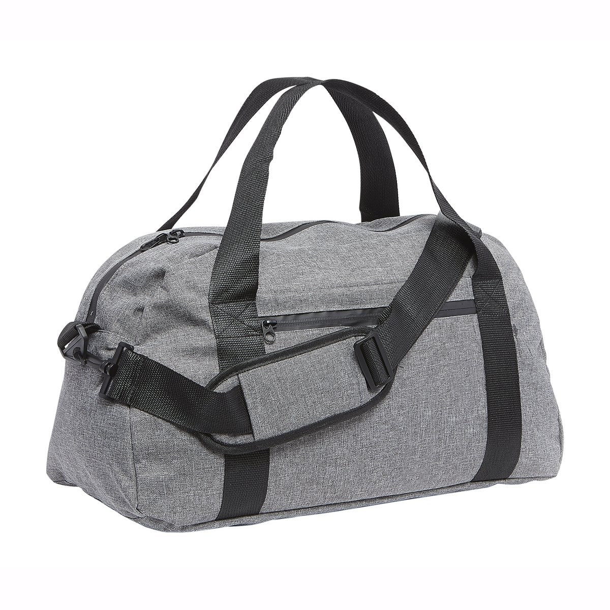 Weekend bag with large main compartment with zipper closure. Front pocket with zip. Reinforced handles and adjustable shoulder strap.
