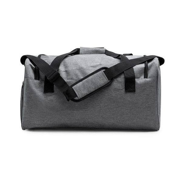Sports bag in 300D RPET with a mélange finish. Capacity 30 litres. Large main compartment with zip closure. Front pocket with zip closure. Side mesh pocket. Handles with velcro closure. Adjustable shoulder strap included.