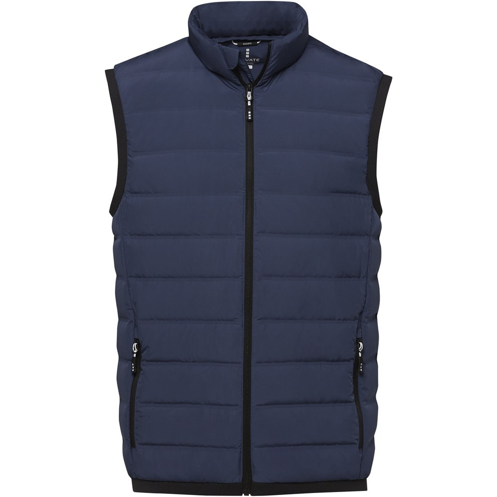 The Caltha men's insulated down bodywarmer – a versatile and eco-friendly outerwear piece. Made of 164 g/m² 750T woven double layer pongee fabric in polyester. The matte fabric in combination with heat seal quilting gives the bodywarmer a modern look while enhancing the overall insulation. Embrace eco-consciousness with RDS certified recycled down insulation of recycled down and recycled feathers, providing warmth without compromising on ethical standards. With an inner storm flap, chinguard, and flat knit elasticated rib cuffs, this bodywarmer offers maximum protection against the elements. The front pockets with zipper closure add convenience and functionality. Embrace both style and ethical values with the Caltha bodywarmer, perfect for any outdoor adventure or daily wear.