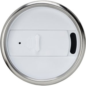 Whether for drinking a morning coffee when travelling or enjoying a nice cup of tea at the office, the Elwood RCS recycled stainless steel tumbler offers the solution. The tumbler's insulated double-wall keeps drinks cold or hot for a long time. Because of the twist-on thumb-slide lid beverages are easy to drink. The combination of stainless steel and plastic makes the tumbler very strong, resistant to corrosion and easy to clean. Volume capacity: 410 ml.
