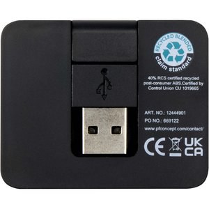 Gaia 4-port USB hub with USB-A and Type-C output and dual input - made from recycled plastic