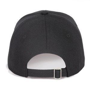 6-panel cap with adjustable self-locking metal buckle.