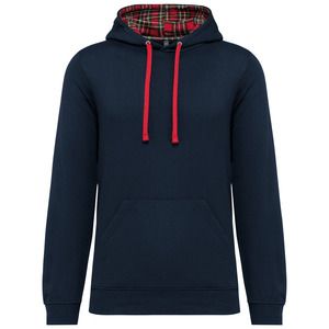 Kariban K4013 - Navy / Red Tartan - Unisex contrast patterned hooded sweatshirt
