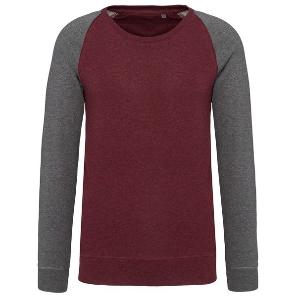 This two-tone organic raglan sleeve sweatshirt for men is available in various sizes from S to 3XL and in 4 different colors.