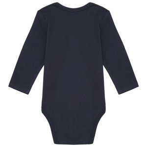 Baby grow bottom fastening with 3 press studs and bias finish.