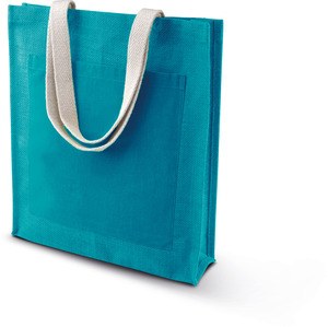 Kimood KI0221 - Turquoise - Eco-Friendly Jute Tote with Cotton Pocket
