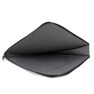 Padded case for documents and/or tablets with L-shaped zip fastening on two sides.
