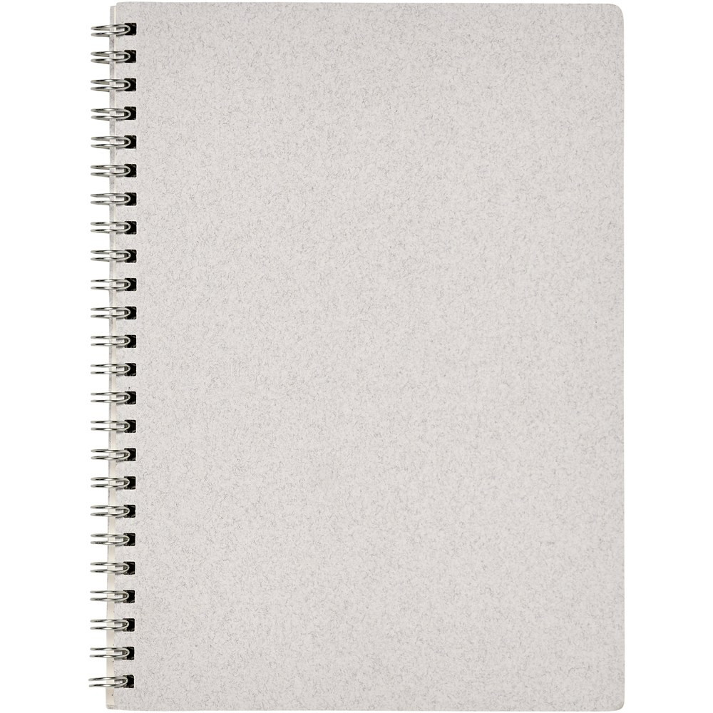 A5 size wire-o notebook made with responsibly sourced cover materials containing cotton waste (15%) and post-consumer recycled waste (40%). Includes 80 sheets, 80 g/m2 100% responsibly sourced recycled paper with a dotted grid. The dotted layout combines the advantages of lined, plain and squared pages, providing structure and stimulating creativity at the same time, making this notebook suitable for a wide range of users. Thanks to the spiral, the notebook can lie flat for convenience and can be folded easily. Made in Italy.