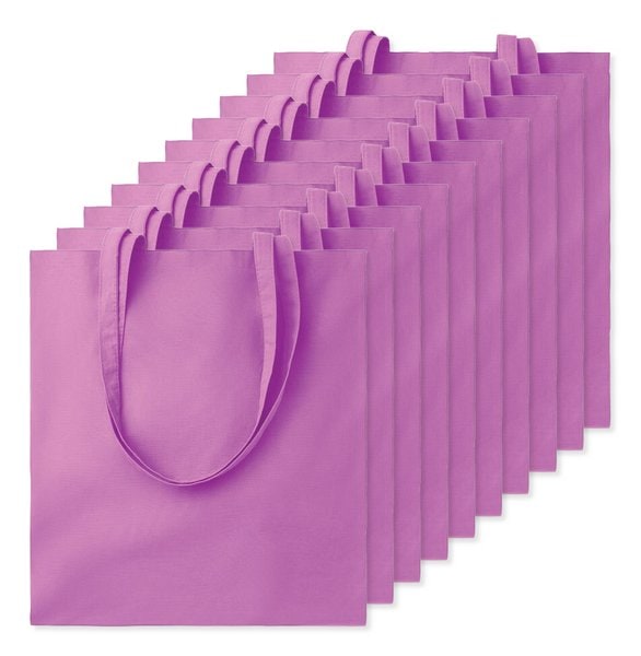 Pack of 10 GiftRetail MO9268 - Violet - COTTONEL COLOUR Eco-Friendly 140gsm Cotton Shopping Tote Bag