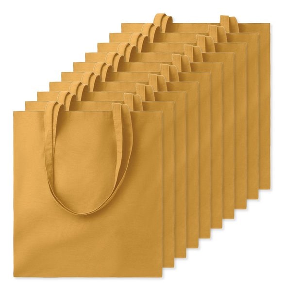 Pack of 10 GiftRetail MO9268 - Ochre - COTTONEL COLOUR Eco-Friendly 140gsm Cotton Shopping Tote Bag