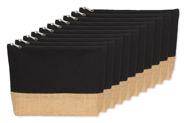 Pack of 10 Kimood KI0276 - Black/ Natural - Eco-Friendly Canvas and Jute Zipper Pouch