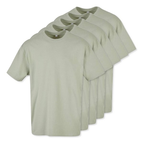 Pack of 5 Build Your Brand BY102 - Soft Salvia - Classic Comfort Oversized Cotton T-Shirt for Men