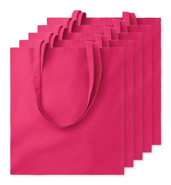 Pack of 5 GiftRetail MO9268 - Fuchsia - COTTONEL COLOUR Eco-Friendly 140gsm Cotton Shopping Tote Bag