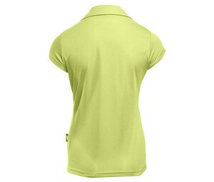 100% polyester. Cap sleeves. Collar of same material as polo. Printed label for comfort. Double-needle topstitched sleeves and bottom hem. V-neck without button.