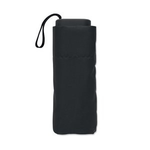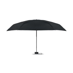 It has a metal and fibreglass windproof frame, black rubberized handle with wrist strap, and compact 17 cm folded size.