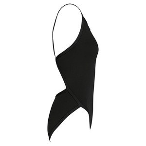 100% polyester including 43% polybutylene terephthalate. Very stretchy fabric. Chlorine resistant. UV 50+ protection. Fairly high front neckline. Binding and double topstitching on straps, body and leg openings. High-leg design for a slimming silhouette. Racer back. Front fully lined. Made in Spain.