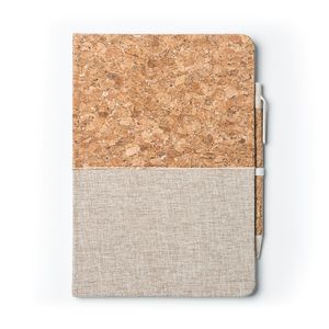 ROBIN A5 notebook with hard covers in cork and cotton - Beige - EgotierPro NB8081