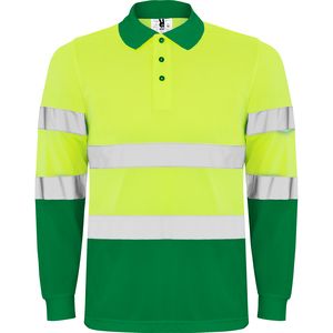 Roly HV9306 - GARDEN GREEN/FLUOR YELLOW - POLARIS L/S Technical high-visibility long-sleeve polo shirt