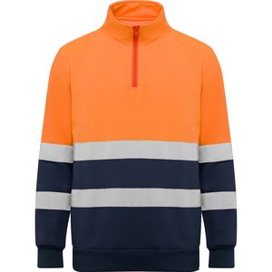 Roly HV9314 - Navy Blue/Fluor Orange - SPICA High-visibility sweater with half zip
