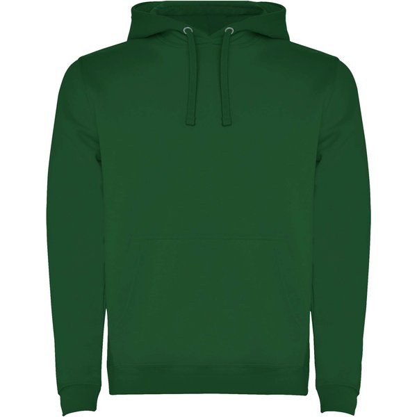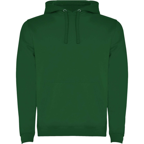 Hoodie with double fabric, adjustable drawcord, reinforced covered seams in collar and kangaroo style pocket. Available in uni-colours and two-tone colours. 1x1 elastane rib in cuffs and waistband. Removable label. The model is 185 cm and is wearing size M.