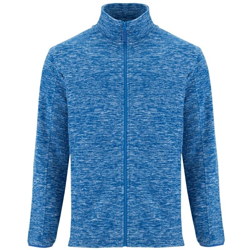 Fleece jacket with high lined collar and matching reinforced covered seams. Injected zip with matching puller made of fabric. Side pockets. Cuffs with elastic trim. Bottom hem with inner side adjusters. Removable label. The model is 185 cm and is wearing size M.