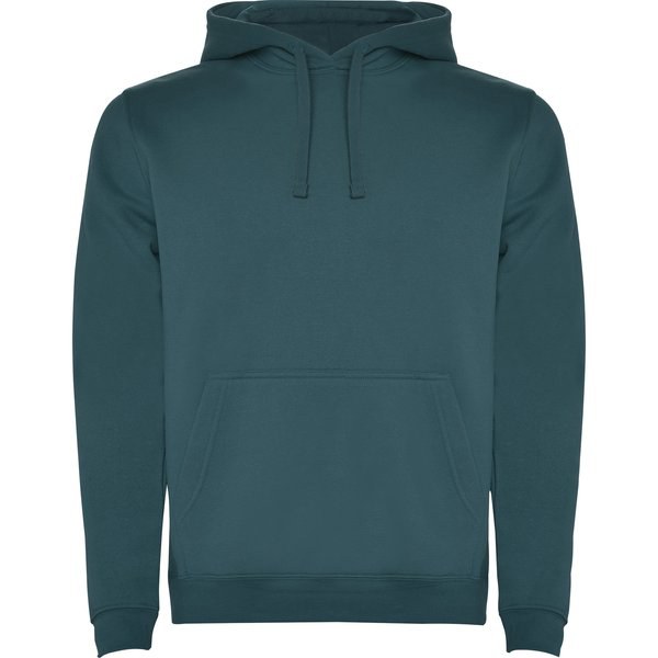 Two-colour hoodie with double fabric, contrasting adjustable drawcord, reinforced covered seams in collar and kangaroo style pocket.