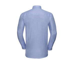 Men's Oxford shirt in breathable cotton-poly blend for professional comfort. This 135 gsm shirt combines classic style with durability for bulk orders. The Russell Collection JZ932 is a versatile formal staple, featuring a unique airy weave that ensures breathability despite its robust appearance. Designed for longevity and low maintenance, the fabric requires minimal ironing. The straight regular cut includes back ease pleats for freedom of movement and a left breast pocket for functionality. Buttoned collar tips and adjustable rounded cuffs provide a polished finish. Available in a wide size range from S to 6XL, it serves as an excellent blank canvas for corporate embroidery or screen printing.