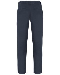 Fly with overstitching and placket with tone-on-tone recycled plastic buttons.