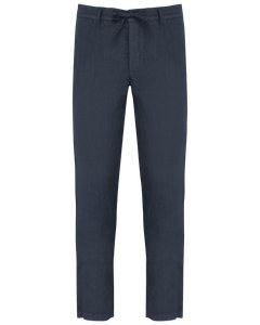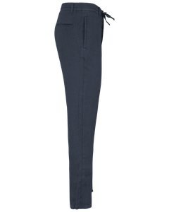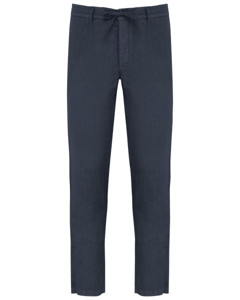Overstitched waistband with flat tone-on-tone drawstring in the main material and embroidered eyelet.