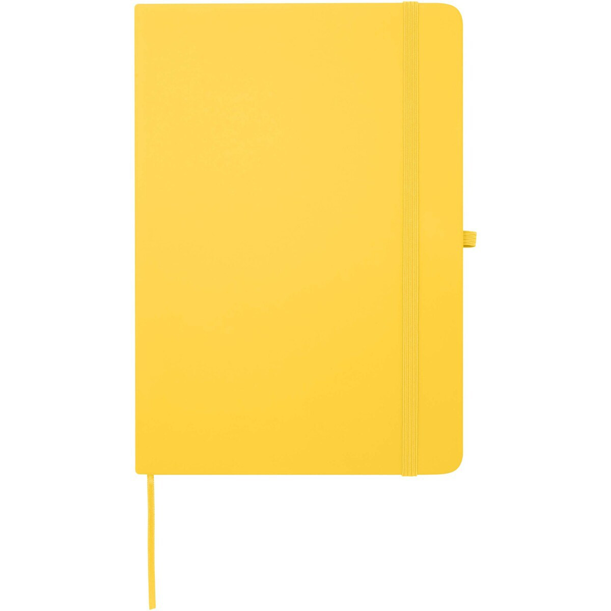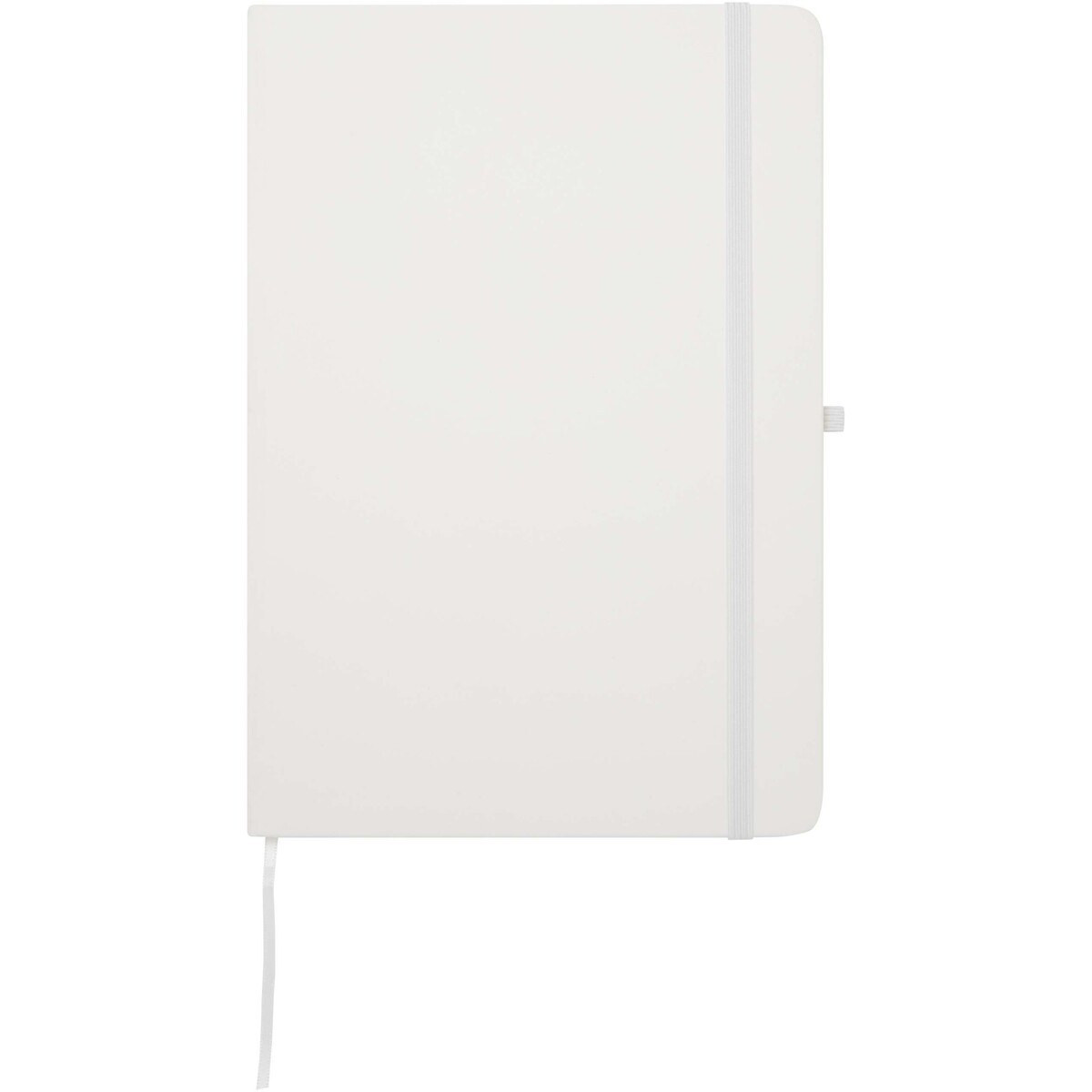 The Spectrum Plus A5 hard cover notebook with rounded corners is not only an office essential but also a great opportunity to promote your brand. The cardboard notebook has a soft-feel cover and 80 lined cream coloured sheets of 70 g/m², ideal for writing down quick ideas or long notes. The notebook has a pen loop, elastic closure, ribbon marker and accordion pocket.