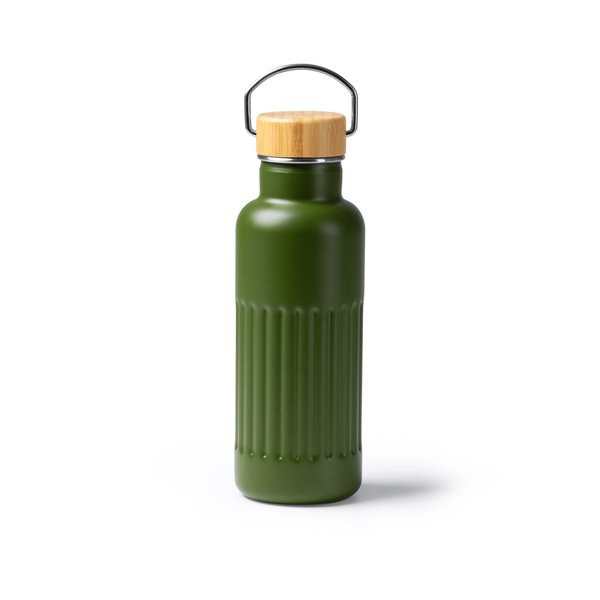 Stamina BI1793 - Dark Green - NOBUK Thermal bottle in recycled 304 stainless steel with double-walled bevelled design and bamboo lid