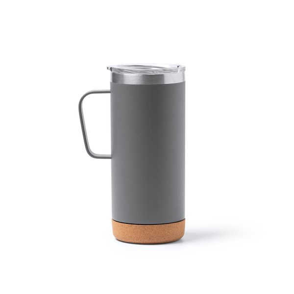 Stamina TZ1368 - Lead - BEYRON Double-walled metallic tumbler with cork bottom and transparent safety lid