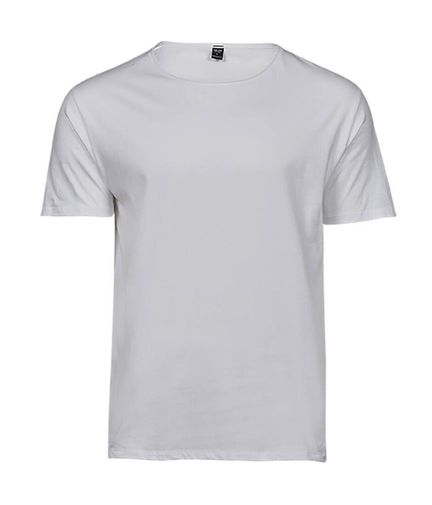 This single jersey fashion-fit tee is crafted from premium quality long-fibre cotton. It has a wider neck and a stylish raw edge collar.