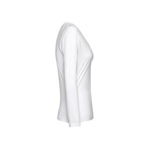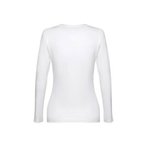 Long-sleeved scoop neck fitted T-shirt for women. 100% carded cotton. White