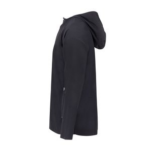 4-way stretch microfiber. Antistatic. Full zip closure. 3-panel hood with drawstring. Dropped back.