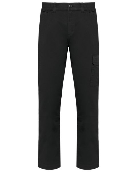 Elasticated waistband on the sides with belt loops, including one wide loop at the center back.