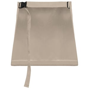 Recycled plastic strap and adjustable buckle to adjust apron size.
